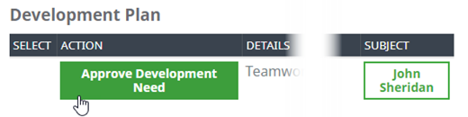 If the Development Plan process is set up to require manager confirmation for Development Needs, the manager receives an Action for each Development Need.