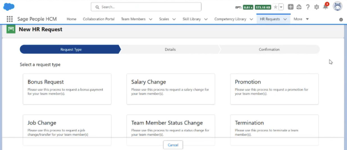 Sage People HR administrators and managers can create HR requests using the Admin Portal wizard in People Portal. It applies to the Admin Portal HR request creation feature in People Portal PMW.
